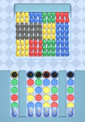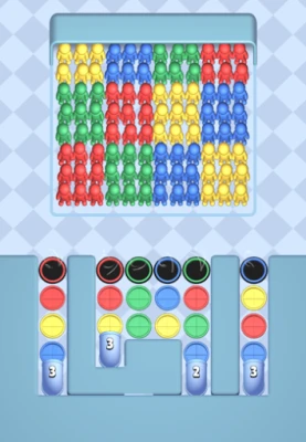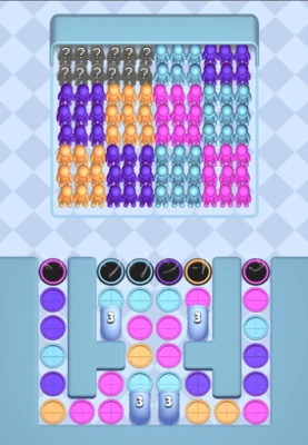 Sort the stickmen into black holes. Black holes are placed in a maze. The black hole that is near the open space is open. Fill all the black holes one by one. Clear the field and you win. When you have no available colors, you lose, so be careful